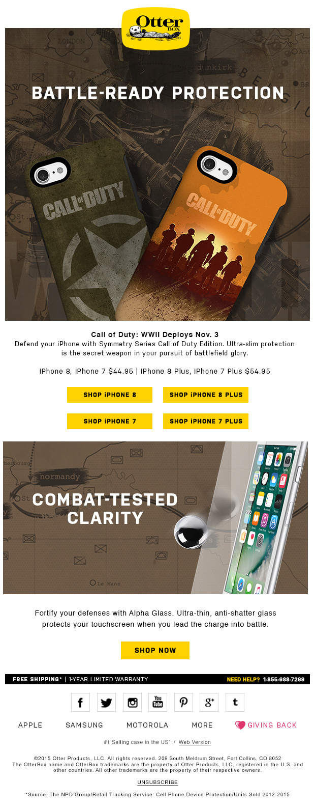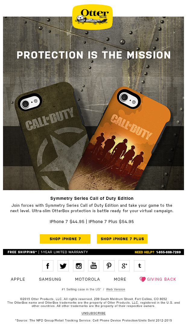 We produced a strategically targeted digital and social campaign to announce the launch of special edition OtterBox Call of Duty cases. It was an opportunity for OtterBox to join the legendary Call of Duty universe, and as a writer, a chance for me to play in the Activision creative sandbox after growing up with their games.